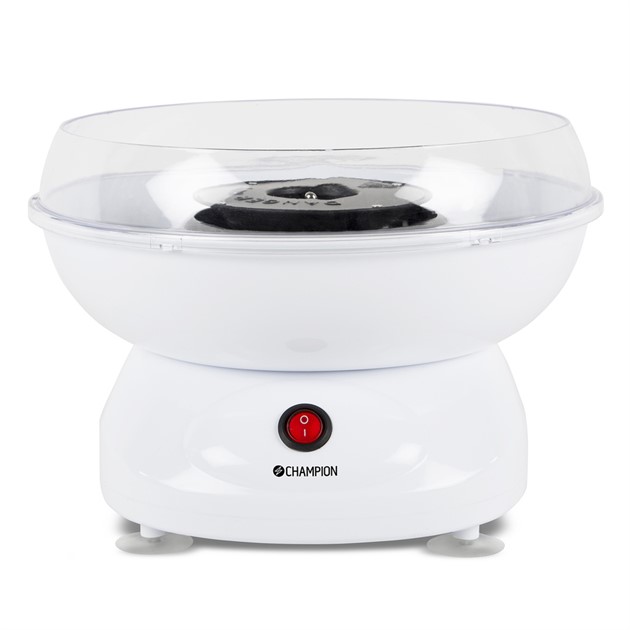 Värm upp maskinen, tillsätt socker och du har hemmagjord fluffig sockervadd. Fånga upp sockervadden ur skålen med en strut eller pinne och du är kalasets hjälte. Champions sockervaddmaskin är liten, smidig och enkel att rengöra tack vare den avtagbara skålen.